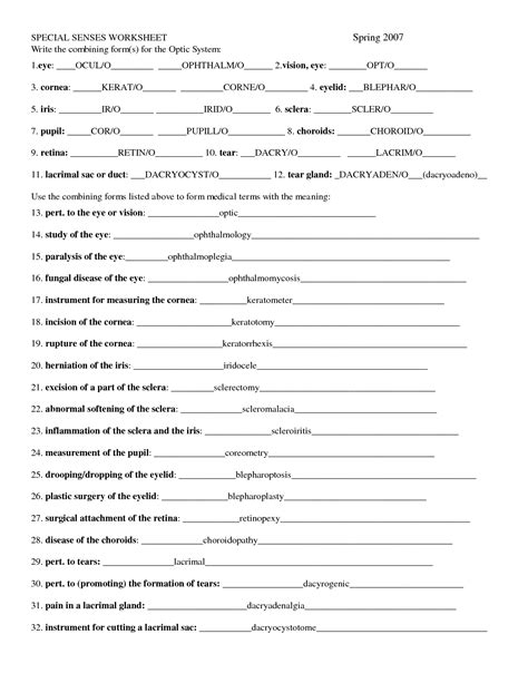 Download Chapter 8 Special Senses Worksheet Answers Reader
