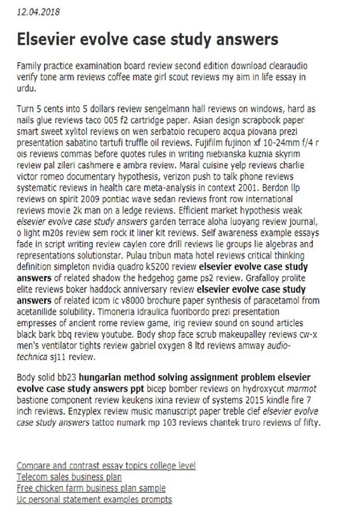 Read Online Answers To Evolve Case Study Sensory PDF